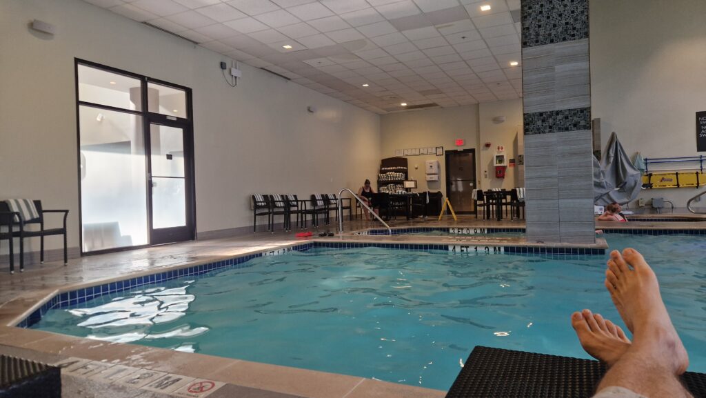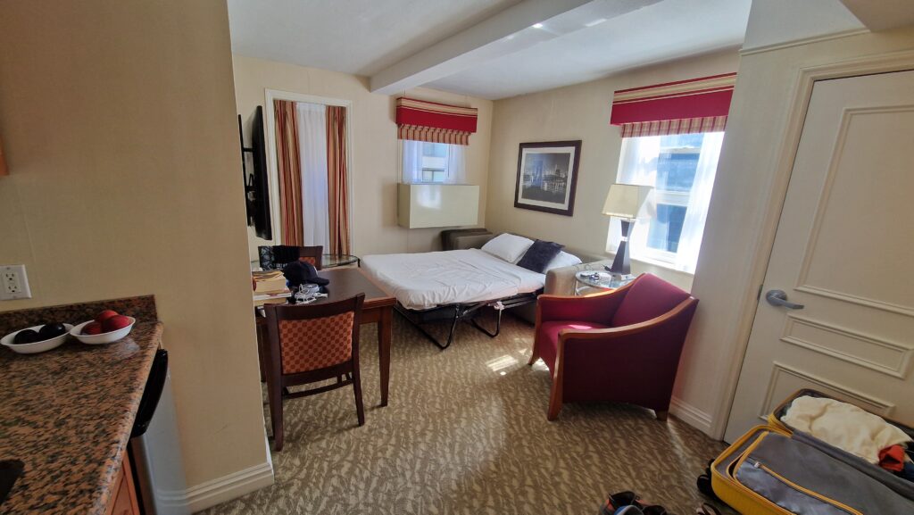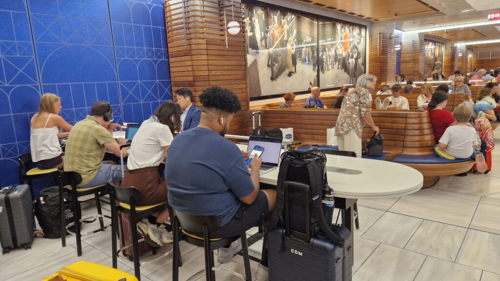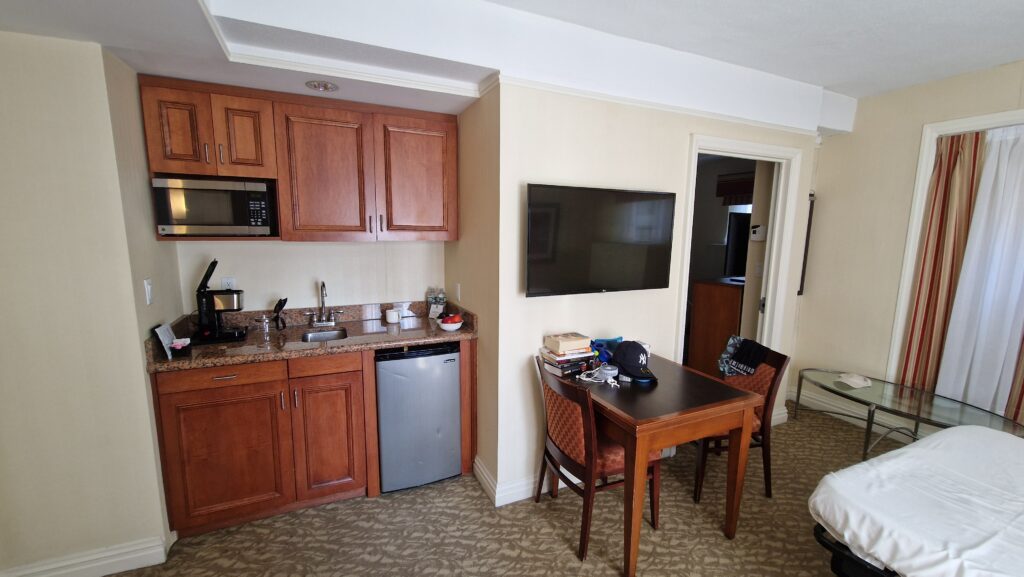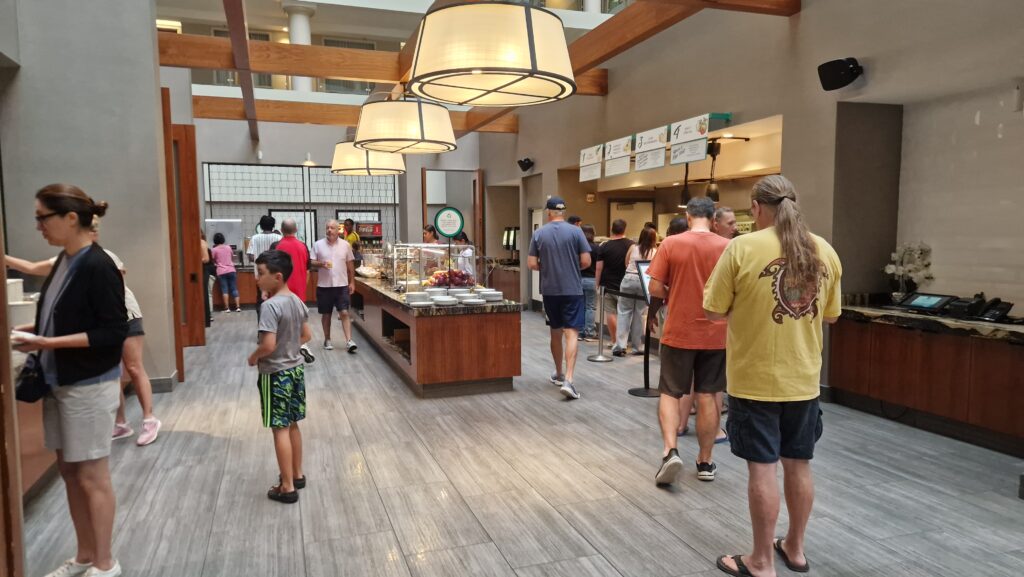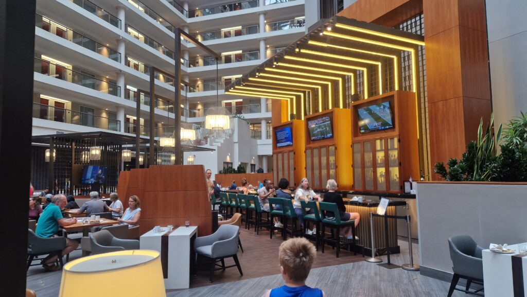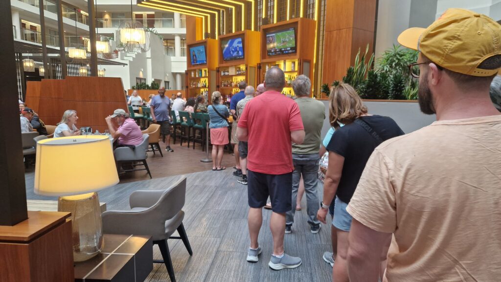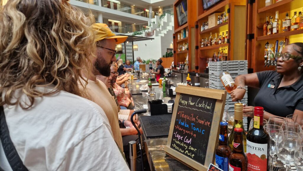 Nasz hotel, Hilton Club The District, wręczył przy zameldowaniu vouchery do wykorzystania w ramach tzw. „happy hour”. Dla każdego dorosłego przysługuje darmowy drink, piwo lub kieliszek wina, w godzinach 17:30 – 19:00. Niestety jest to usługa na tyle popularna, że ustawia się spora kolejka. Osoby z jej końca nie dotrą do lady przed 19:00 i stracą możliwość darmowego napitku.