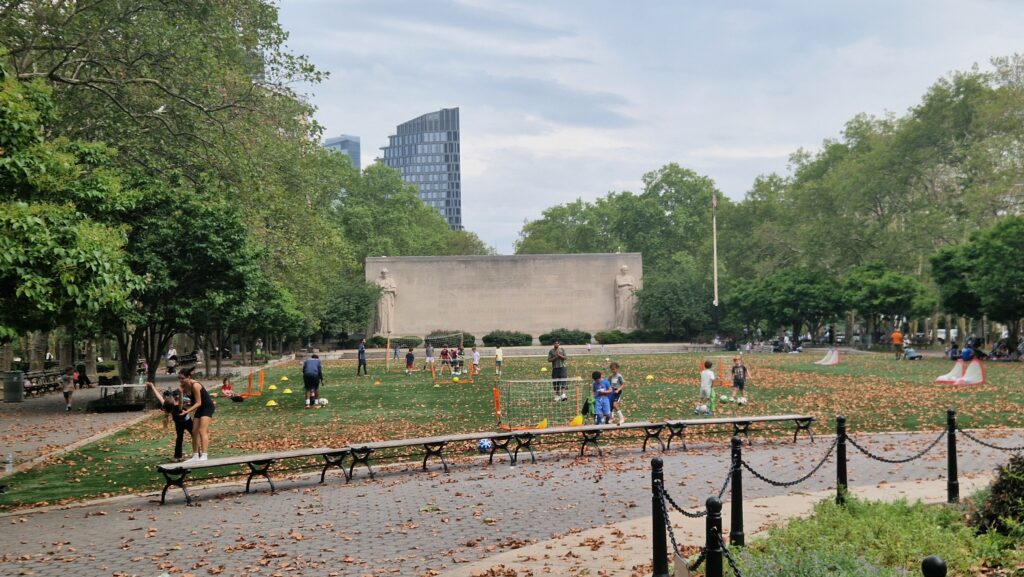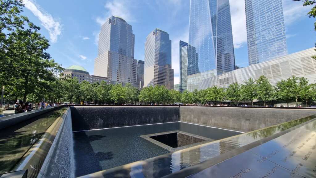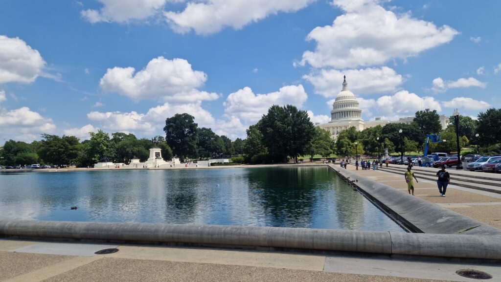 Niestety, temperatura 33 stopnie w cieniu nie pozwala na komfortowy spacer przez National Mall. Jest to wprawdzie teren zielony, ale dość „łysy”; bez drzew i cienia. Przemykamy się szybko do restauracji.