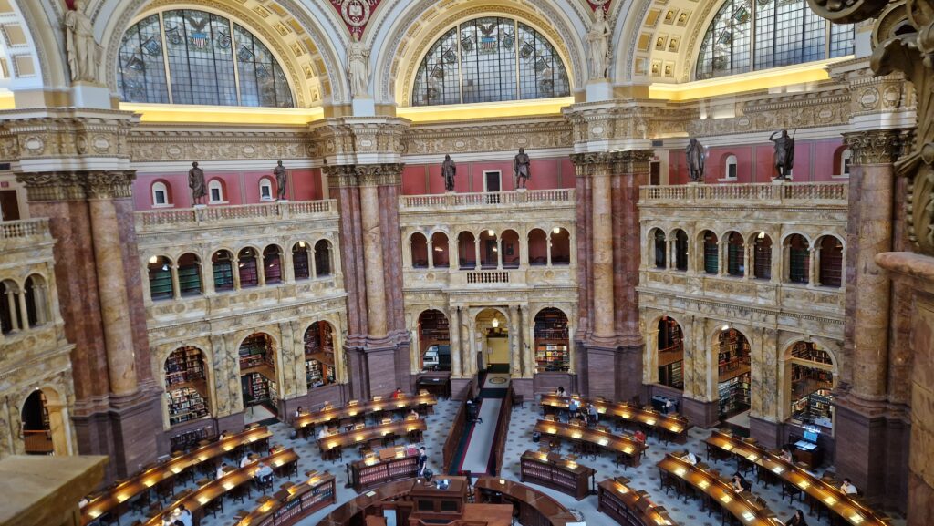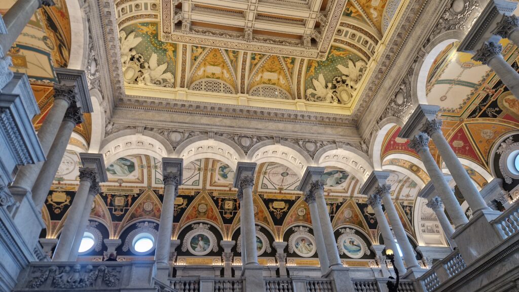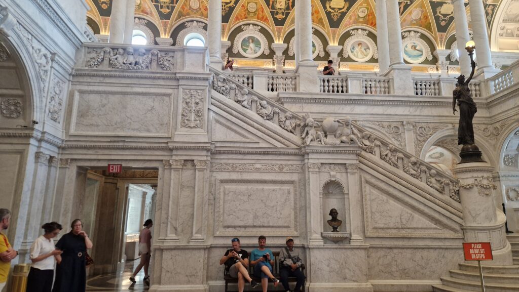 Później jeszcze wizyta w Library of Congress. Znowu darmowe wejściówki, ale wymagające uprzedniej rezerwacji. Ładne wnętrza, choć nie za wiele książek.