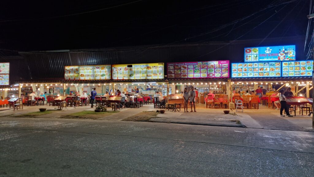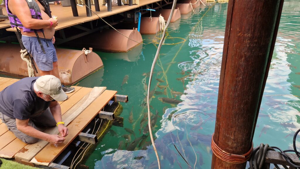 Następnym etapem podróży jest obiad w bazie turystycznej. Baza składa się z restauracji, wypożyczalni kajaków (za darmo) i domków noclegowych na wodzie (w tym domkach są noclegi w ramach dwudniowych wycieczek na jezioro).