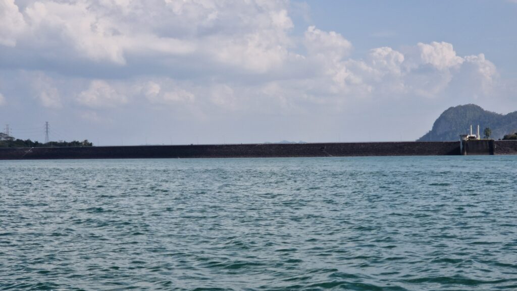 Na zakończenie parę słów o widocznej na zdjęciu poniżej tamie. Otóż jezioro Cheow Lan powstało sztucznie w 1982 roku, kiedy to ta tama została zbudowana: