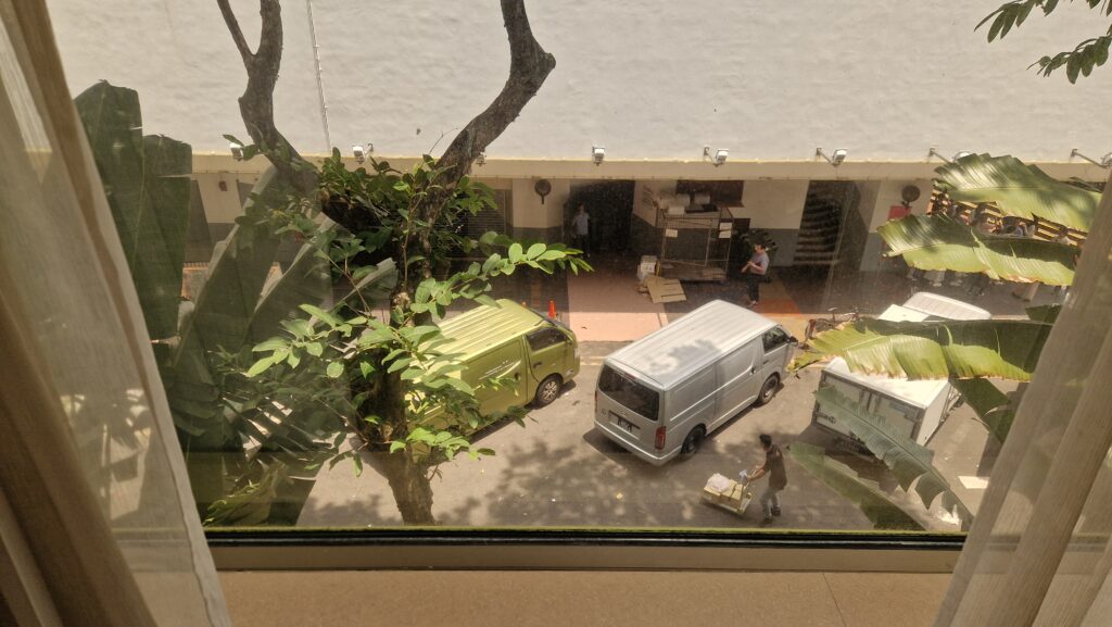 Widok z pokoju nie jest zachwycający, ale – jak się później okazało – hotel ma inne plusy.
