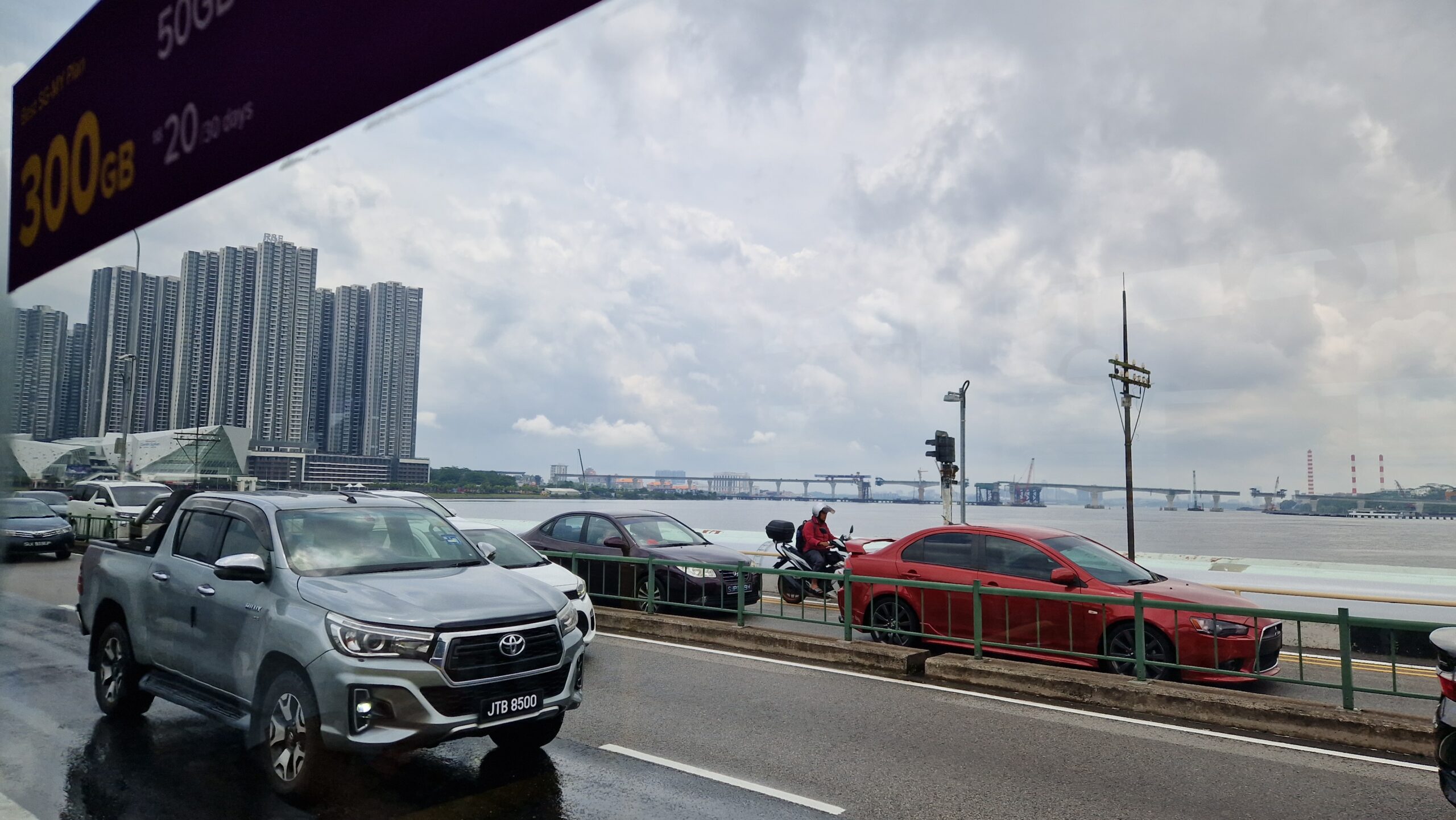 Wszystkie powyższe etapy podróży z Singapuru do JB Sentral są szybkie i bezproblemowe, ale z uwagi na sporą liczbę tych etapów, cała podróż zajmuje blisko 3 godziny. Można też zamówić transport samochodowy, ale cały most do Malezji jest zakorkowany, a autobusy mają buspas. Opcją wygodniejszą od autobusu i również odporną na korki jest wahadłowy malezyjski pociąg jeżdżący pomiędzy Singapurem a Johor Bahru: KTMB Shuttle Tebrau. Próbowaliśmy na niego kupić bilety, ale nie było już miejsc.