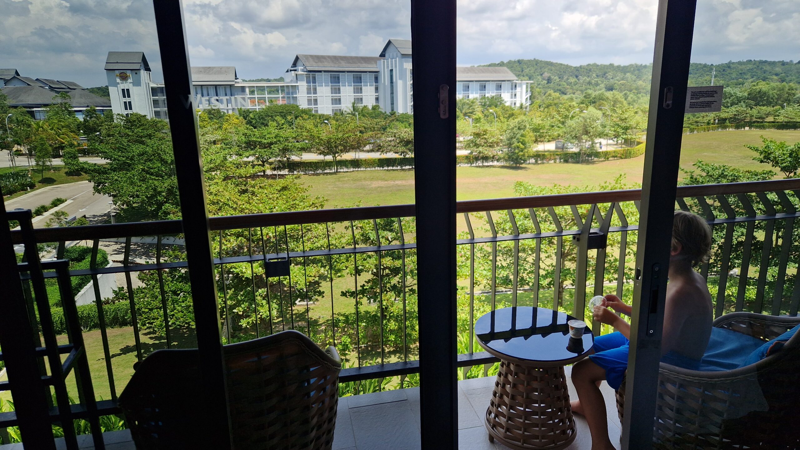 Hard Rock Hotel Desaru, 4 gwiazdki. MYR 2600 za 3 dni ze śniadaniami dla 2 dorosłych i 2 nastolatków. Wybór podyktowany akceptowalną odległością od plaży, ceną, no i tym, że w ogóle są w nim miejsca, bo w Desaru nie ma zbyt wielu hoteli. Pewnym rozczarowaniem okazuje się pokój, bo jest daleko od hotelowych atrakcji i na parterze, kompletnie bez żadnego widoku. Pilot od telewizora nie działa, co jest problemem, bo nie da się wyłączyć głośnej powitalnej muzyki. Nie działa też telefon. Szybko to reperują. Poza tym wszystko ok. Można za darmo wypożyczyć do pokoju gitarę elektryczną, do wyboru jest wiele modeli Fendera.